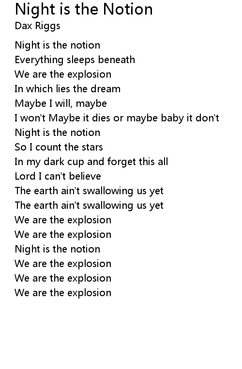 | Song | Night is the Notion |