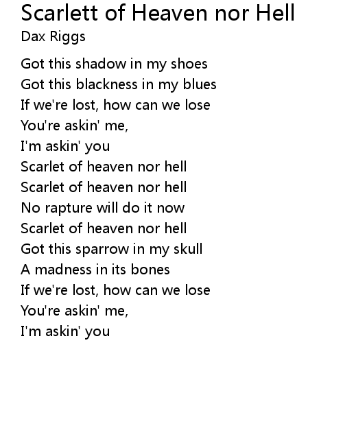 | Scarlet of heaven nor hell | |
