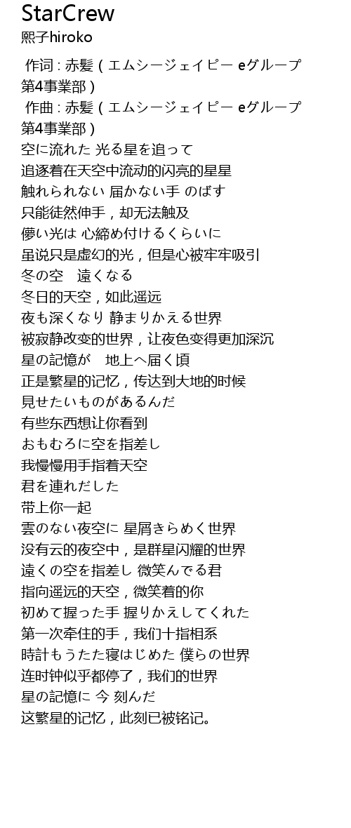 | [01:45.331] | 星の記憶に 今 刻んだ |