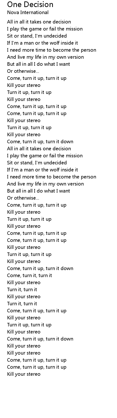All in all it takes one decision |