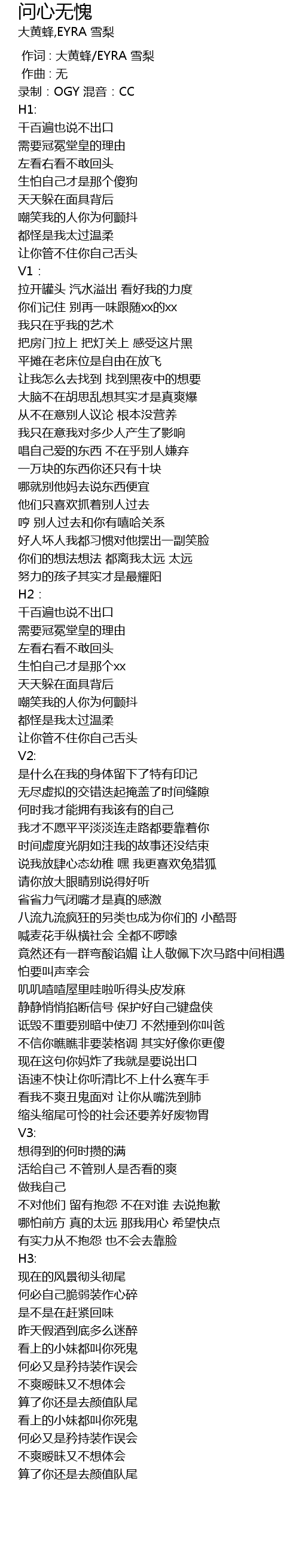 | [00:09.194] | 录制:OGY 混音:CC |