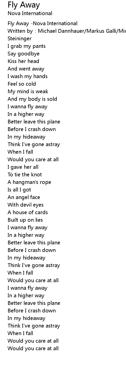 | [02:09.157] | I wanna fly away |