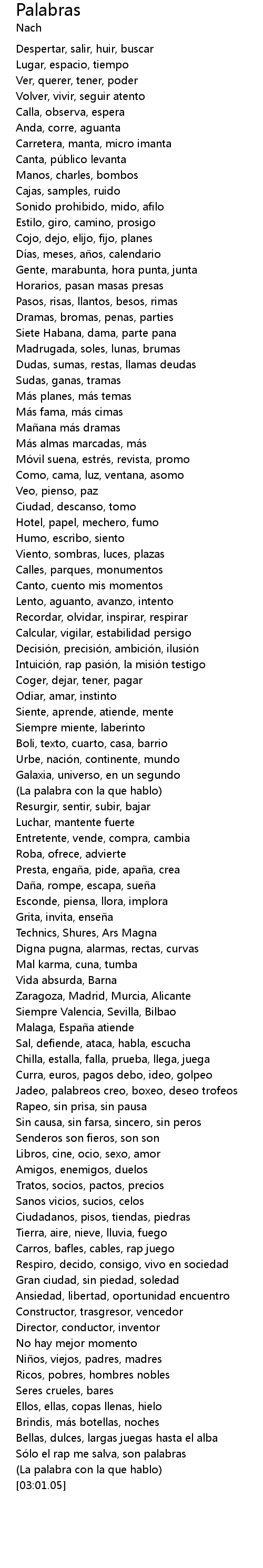 | [02:35.80] | Sólo el rap me salva, son palabras |