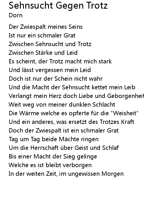 | Und die Macht der Sehnsucht kettet mein Leib | |