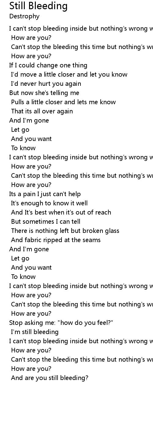 | Can't stop the bleeding this time but nothing's wrong with me | |