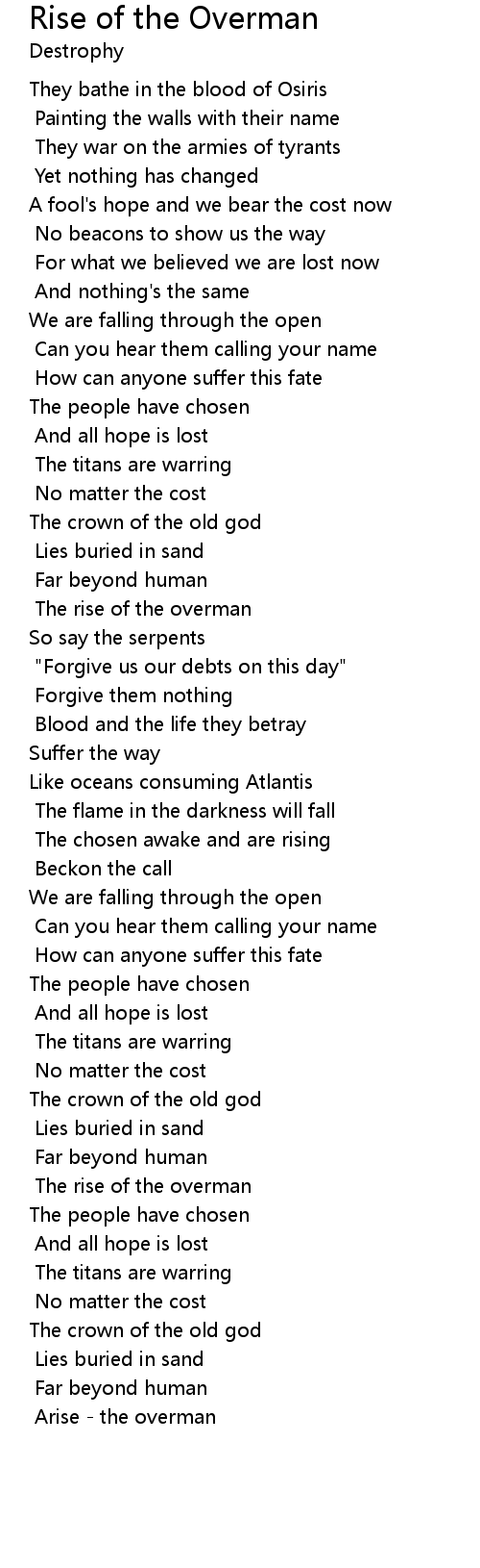 | Arise - the overman |