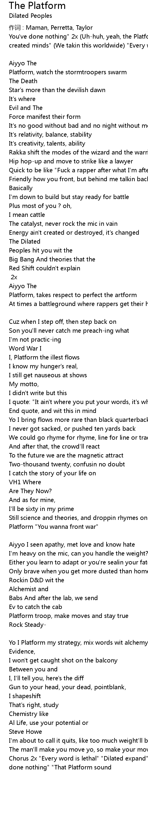 | Chorus 2x "Every word is lethal" "Dilated expand" "That Platform sound" "You've done nothing" "That Platform sound |