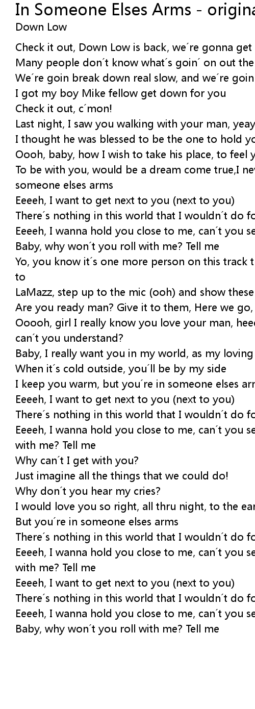 | To be with you, would be a dream come true, I never do you harm but you re in someone elses arms | |