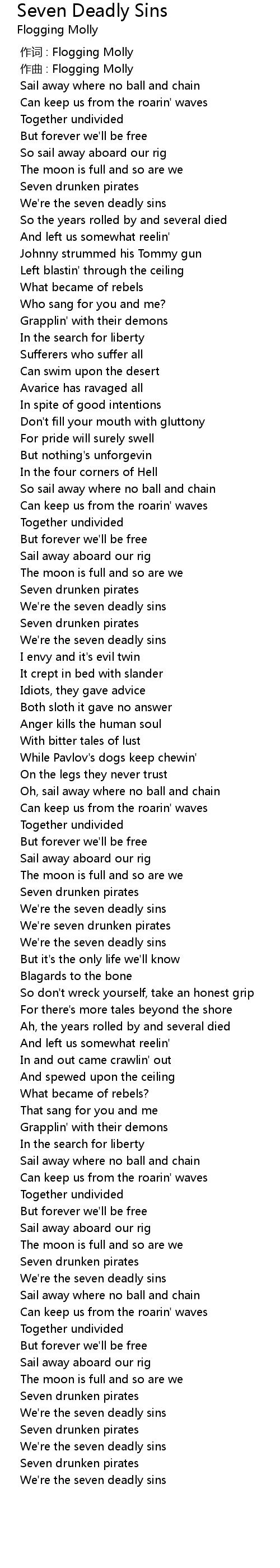 | [00:00.000] | 作词 : Flogging Molly |