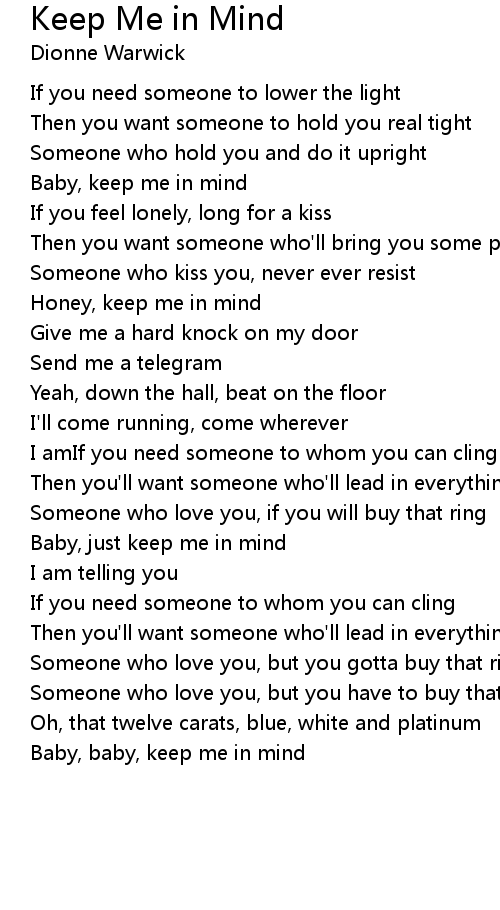 Baby, keep me in mind |