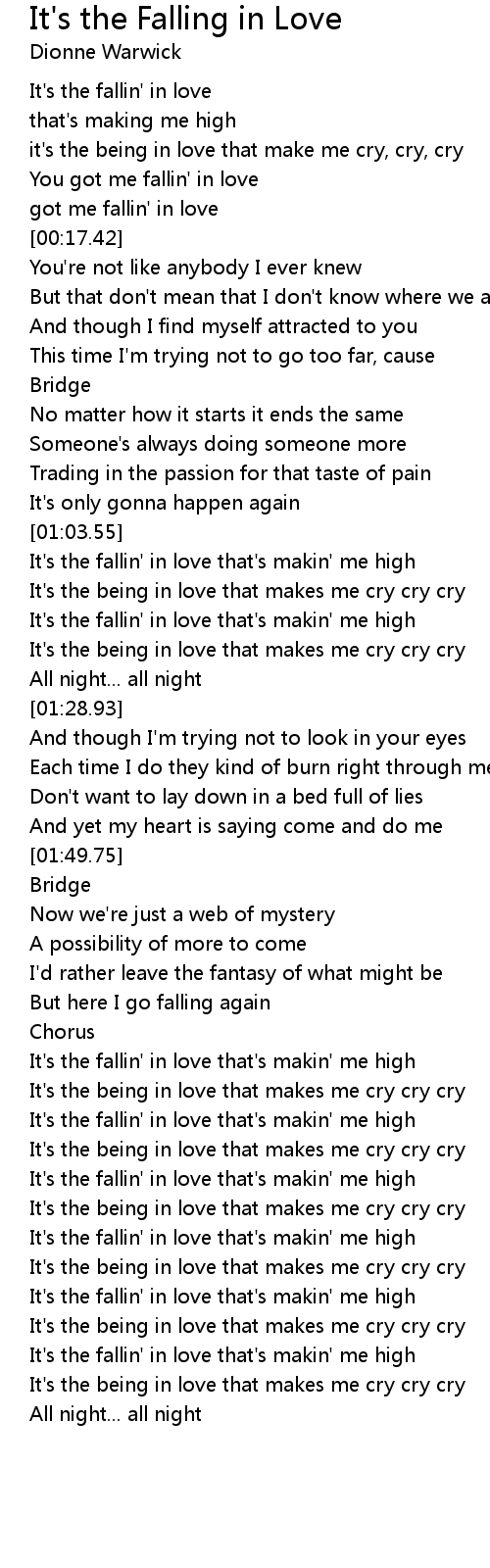 [01:13.60] It's the fallin' in love that's makin' me high