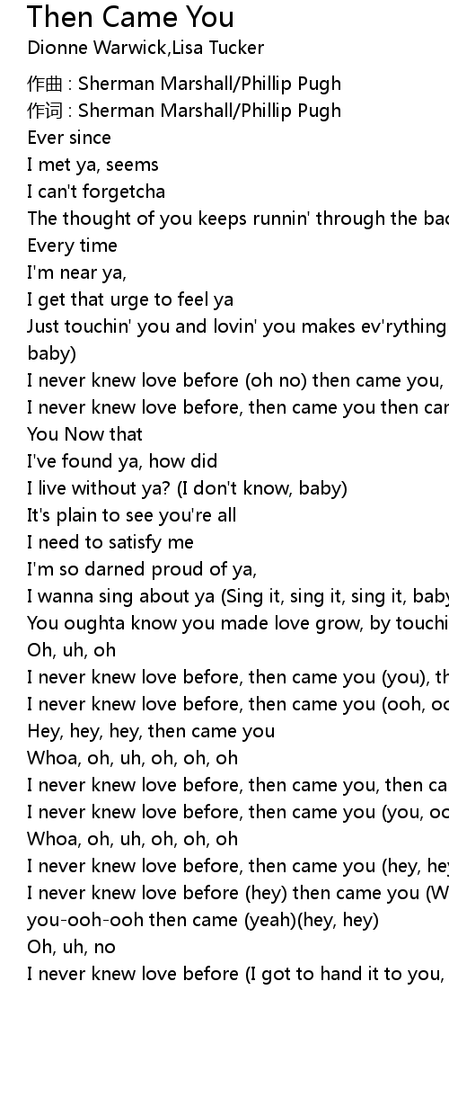 | I never knew love before, then came you you, ooh, ooh then came you | |