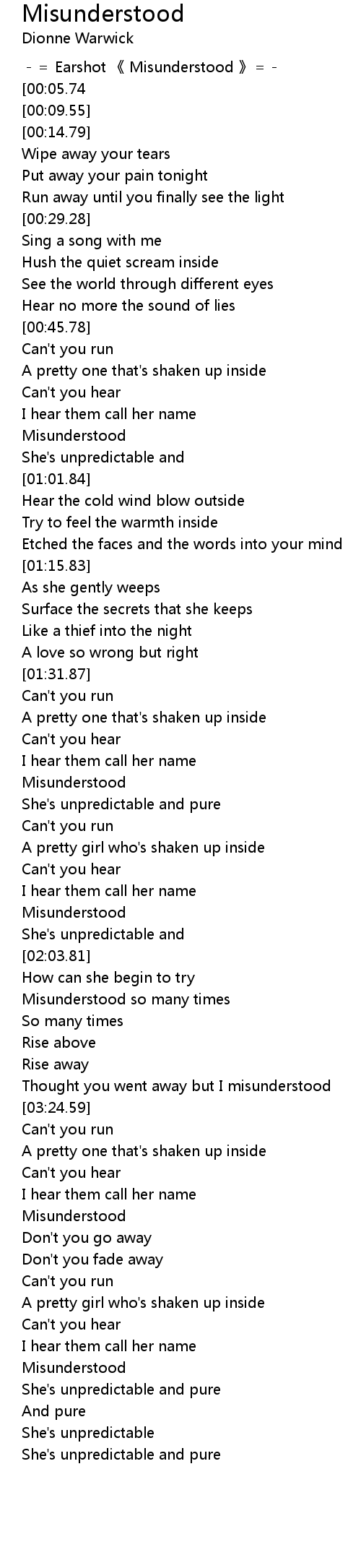 | [00:00.00] | -= Earshot 《 Misunderstood 》=- |