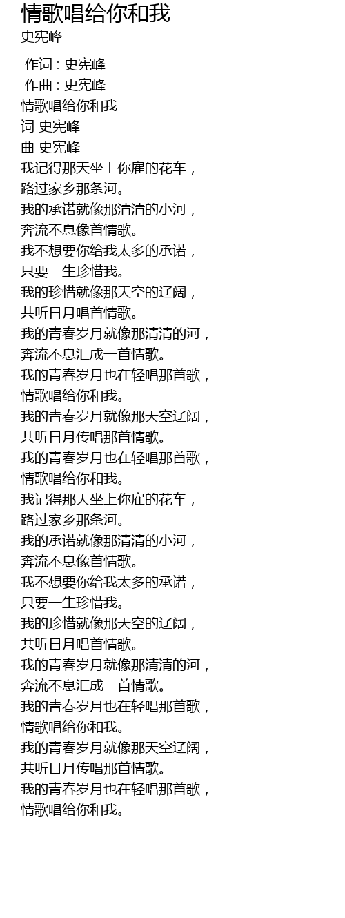 | [02:31.91] | qíng gē chàng gěi nǐ hé wǒ. |