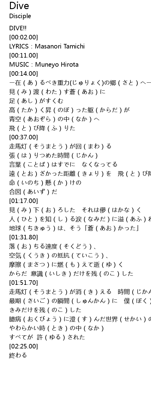 | [01:45.10] | からだ 意識(いしき)だけを残(のこ)した |