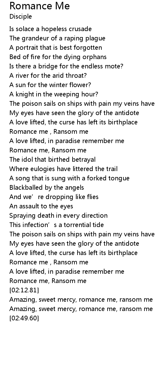 | [02:22.33] | Amazing, sweet mercy, romance me, ransom me |