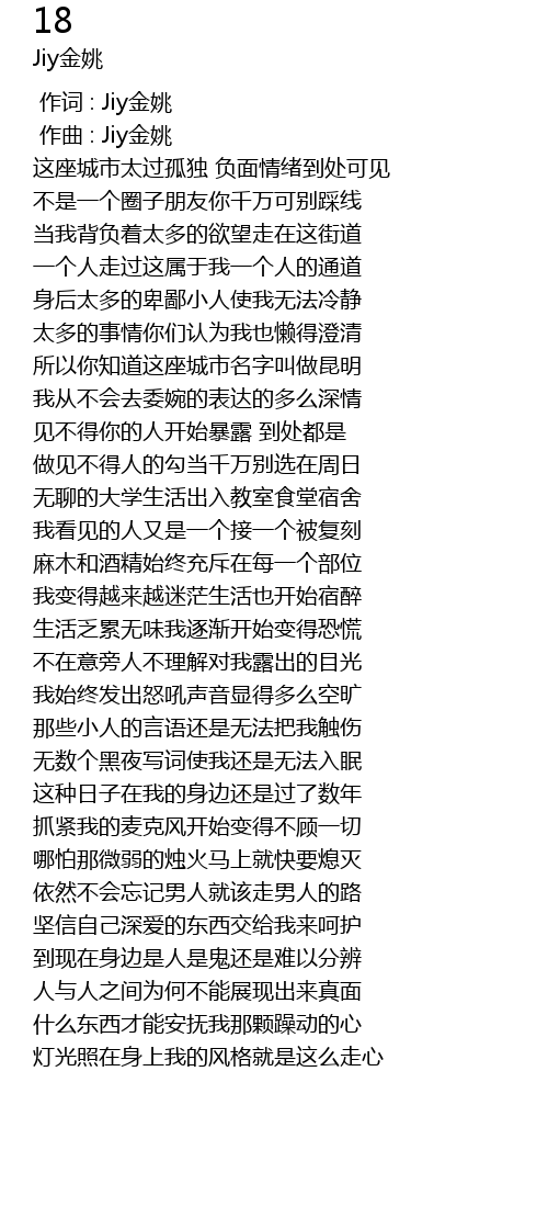 | [00:00.000] | 作词 : Jiy金姚 |