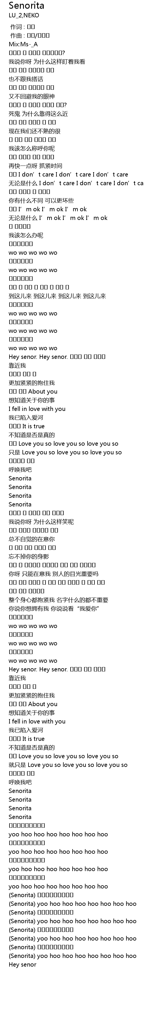| [03:10.758] | Senorita yoo hoo hoo hoo hoo hoo hoo hoo |