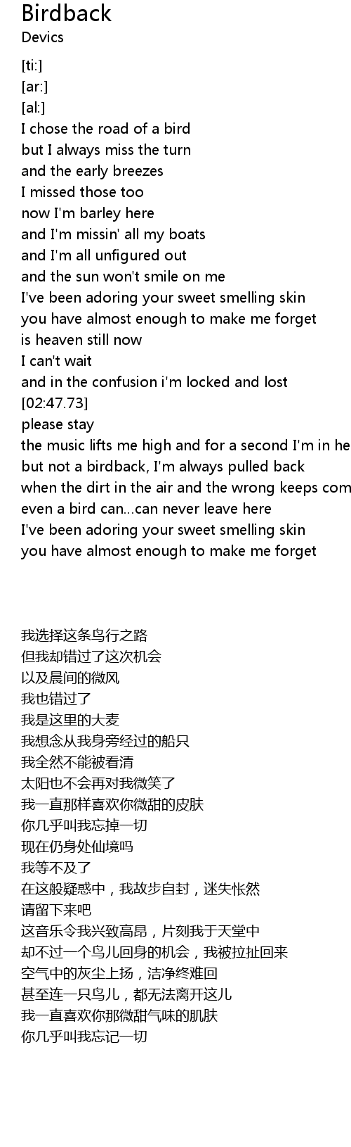 | [03:15.37] | but not a birdback, I'm always pulled back |