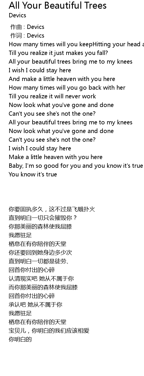 | [00:47.490] | All your beautiful trees bring me to my knees |