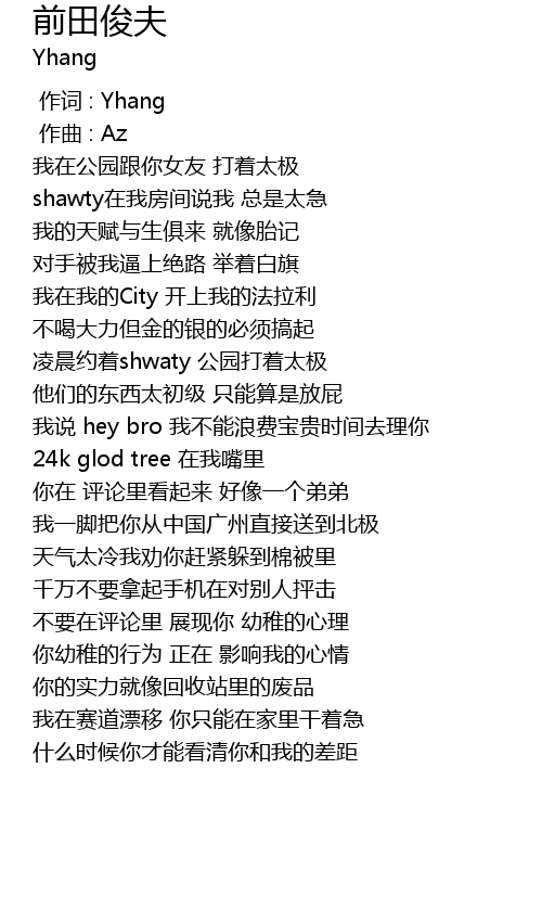 | [00:15.125] | 我在公园跟你女友 打着太极 |