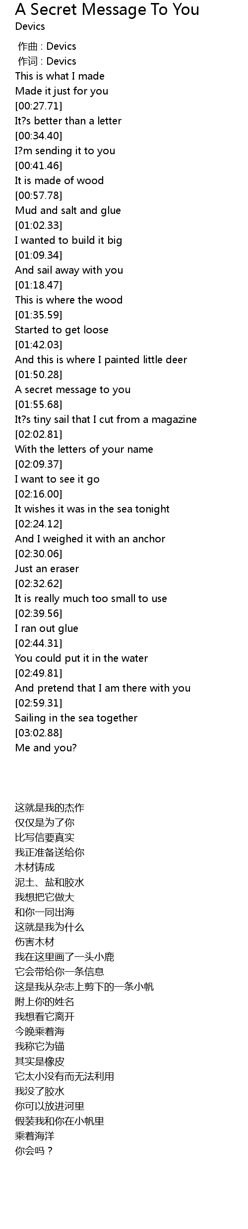 | [01:58.56] | It?s tiny sail that I cut from a magazine |