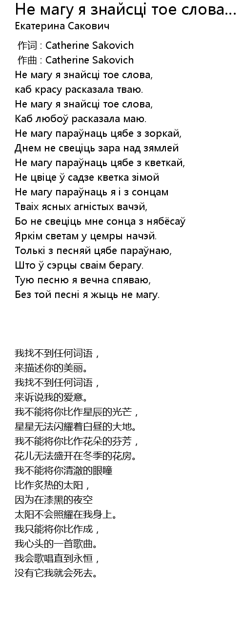 作词 : Catherine Sakovich |