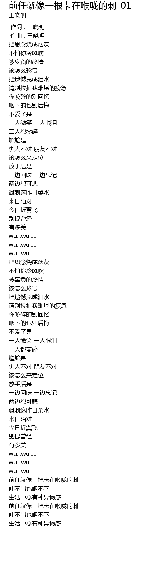 | Song | 前任就像一根卡在喉咙的刺_01 |