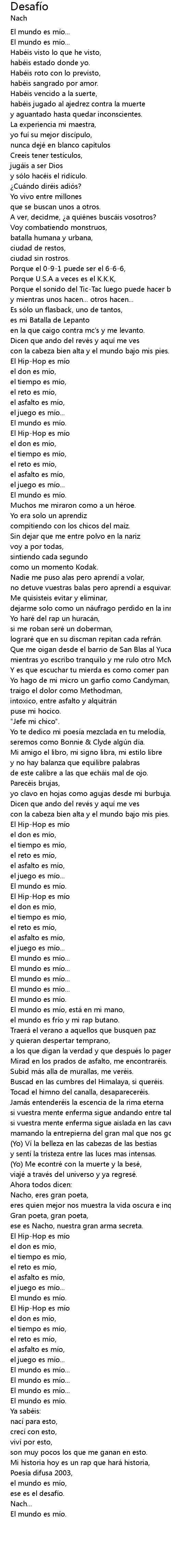 | Mi historia hoy es un rap que hará historia, | |