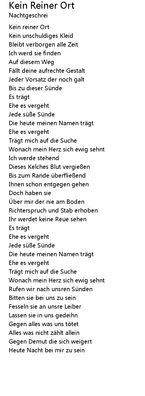 | Song | Kein Reiner Ort |