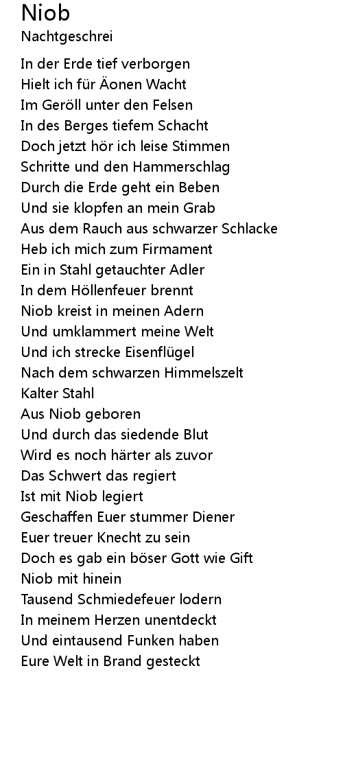 | Niob kreist in meinen Adern | |