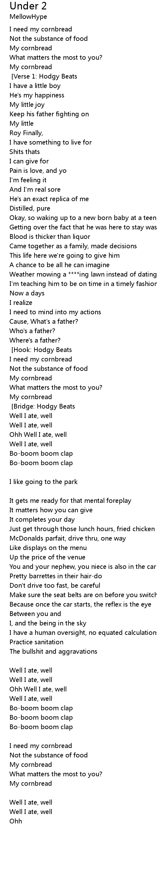 My cornbread [x2] [Verse 1: Hodgy Beats] |