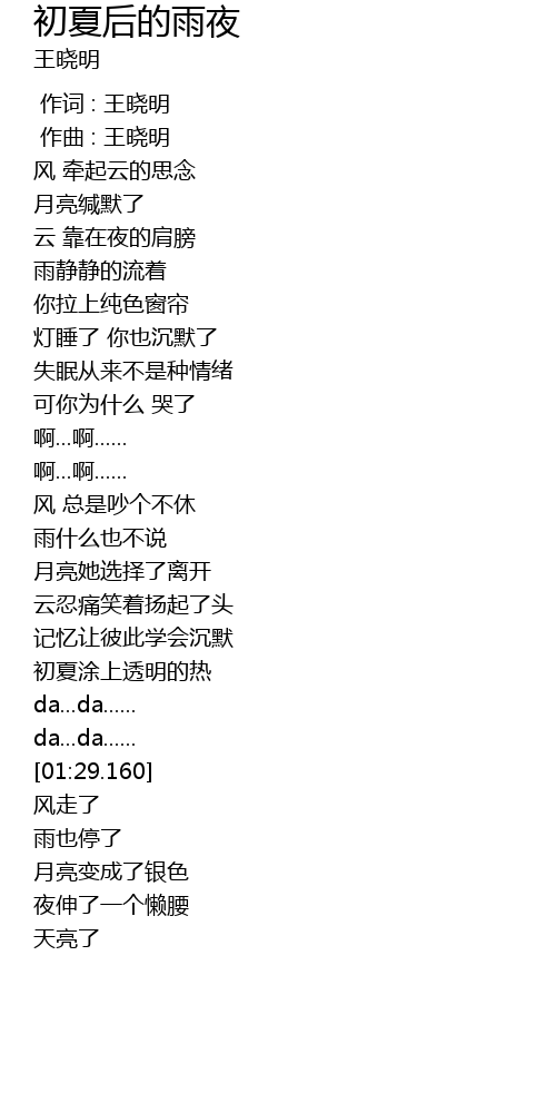 | [00:01.000] | 作曲 : 王晓明 |