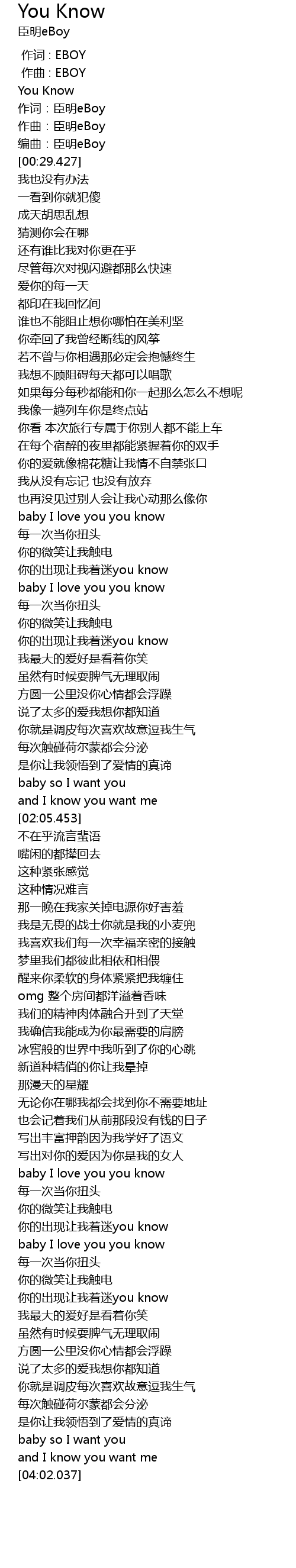 | [00:00.000] | 作词 : EBOY |