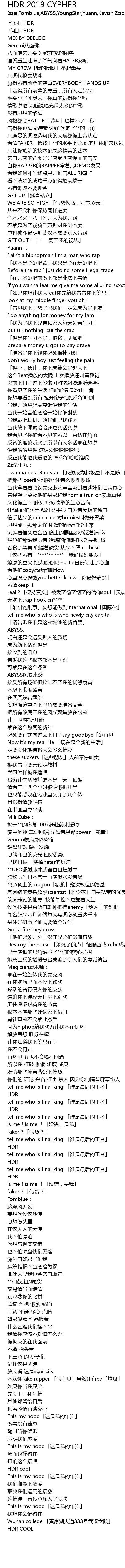 | [00:00.000] | 作词 : HDR |