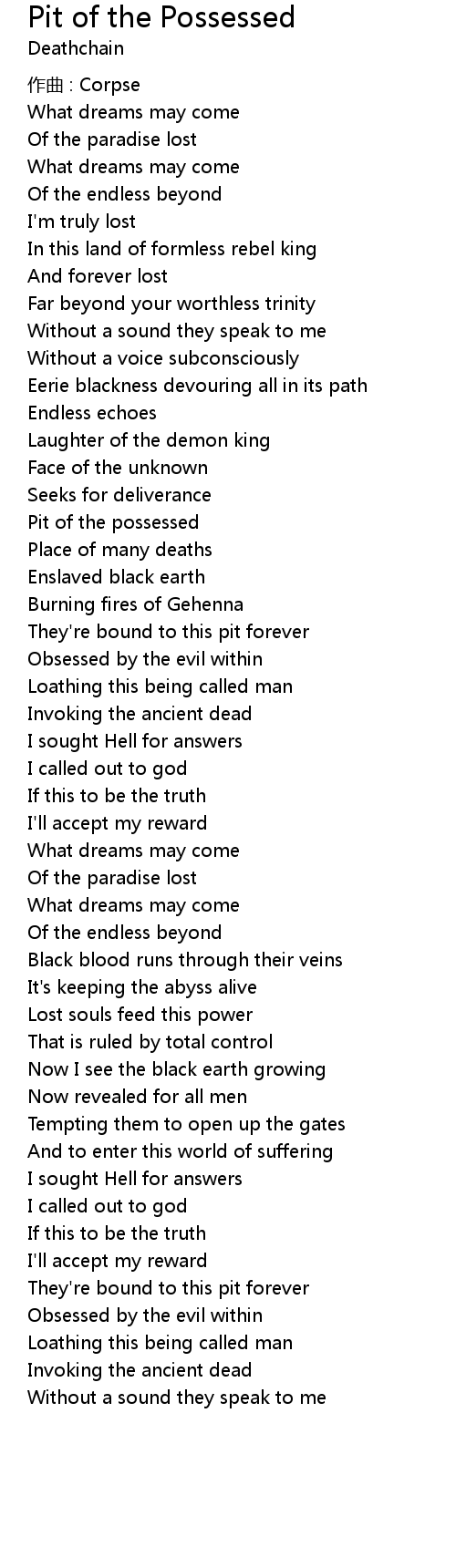 | Song | Pit of the Possessed |