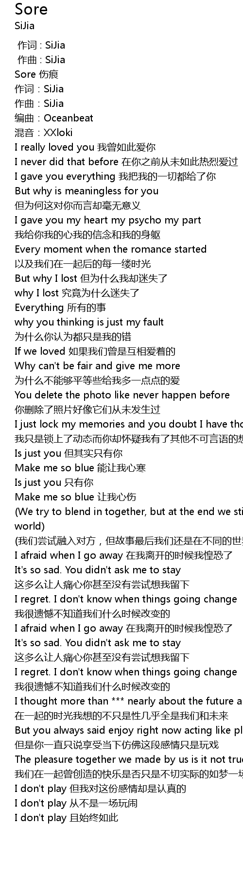 | [01:07.837] | I just lock my memories and you doubt I have thought 我只是锁上了动态而你却怀疑我有了其他不可言语的想法 |