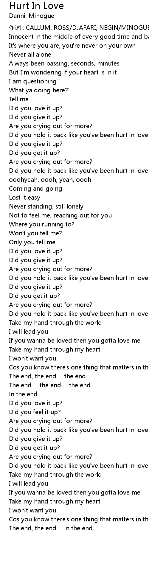 | Did you hold it back like you' ve been hurt in love before? x2 | |