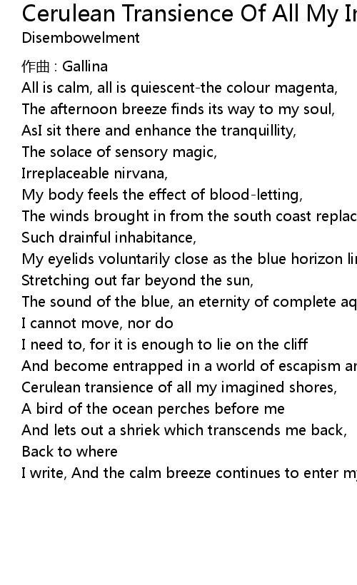 | Song | Cerulean Transience Of All My Imagined Shores |
