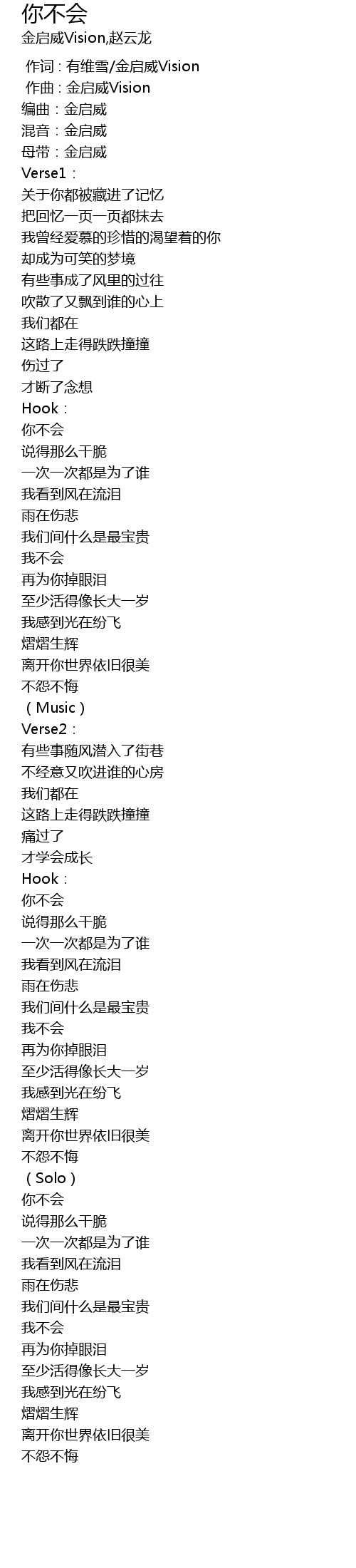 | [00:00.000] | 作词 : 有维雪/金启威Vision |
