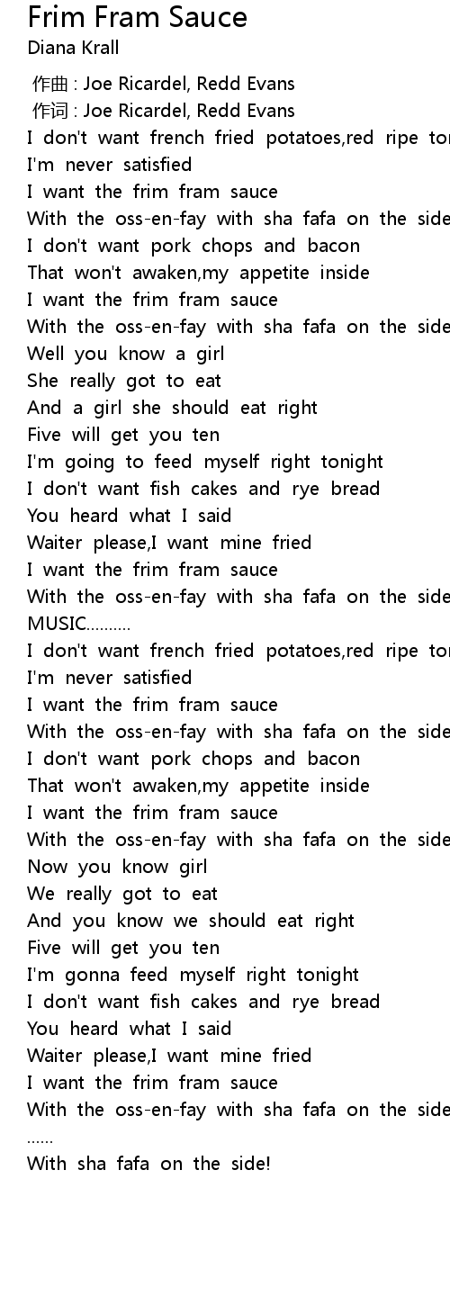 | [04:33.267] | With the ossenfay with sha fafa on the side |