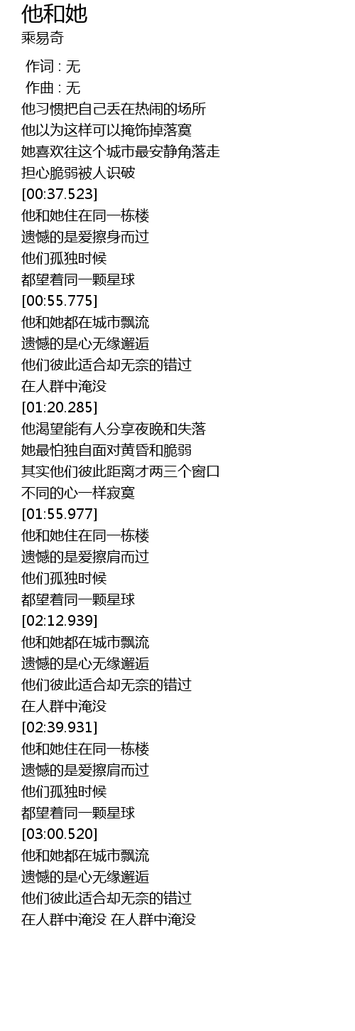 | [03:01.015] | ta he ta dou zai cheng shi piao liu |