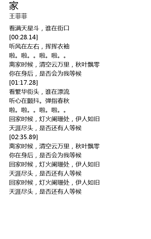 | [02:59.30] | 回家时候,灯火阑珊处,伊人如旧 |