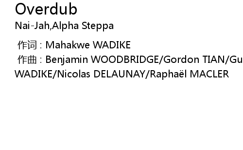 | [00:00.000] | 作曲 : Benjamin WOODBRIDGE/Gordon TIAN/Guillaume MONIER/Mahakwe WADIKE/Nicolas DELAUNAY/Raphaël MACLER |