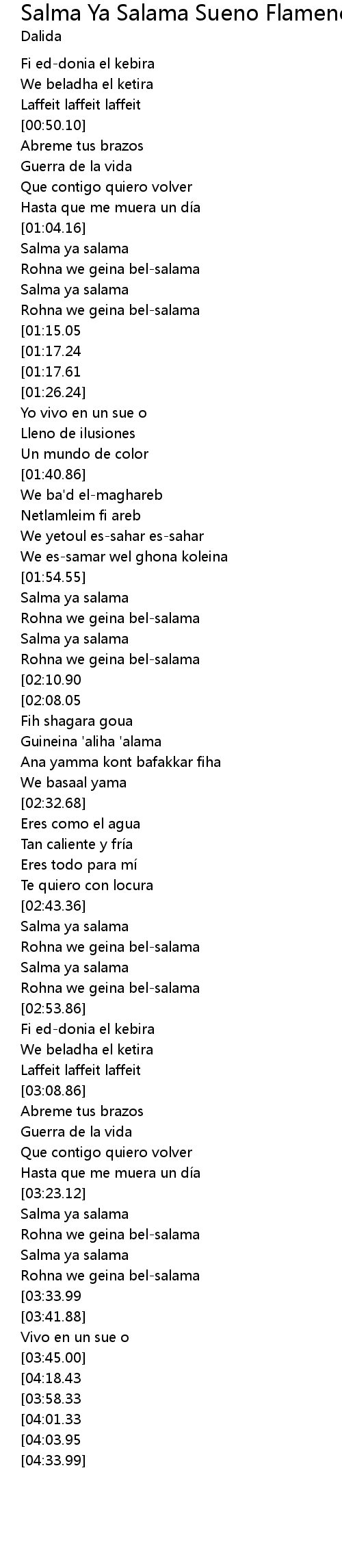 | [04:23.74][04:18.43][04:12.43][04:08.02][03:55.70][03:45.25] | Salma ya |