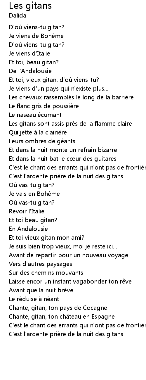 | Et toi, vieux gitan, d' ou vienstu? | |