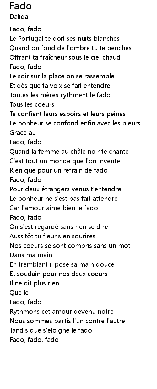 | Car l' amour aime bien le fado | |