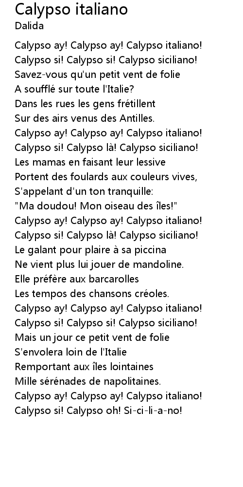| Calypso si! Calypso oh! Siciliano! |