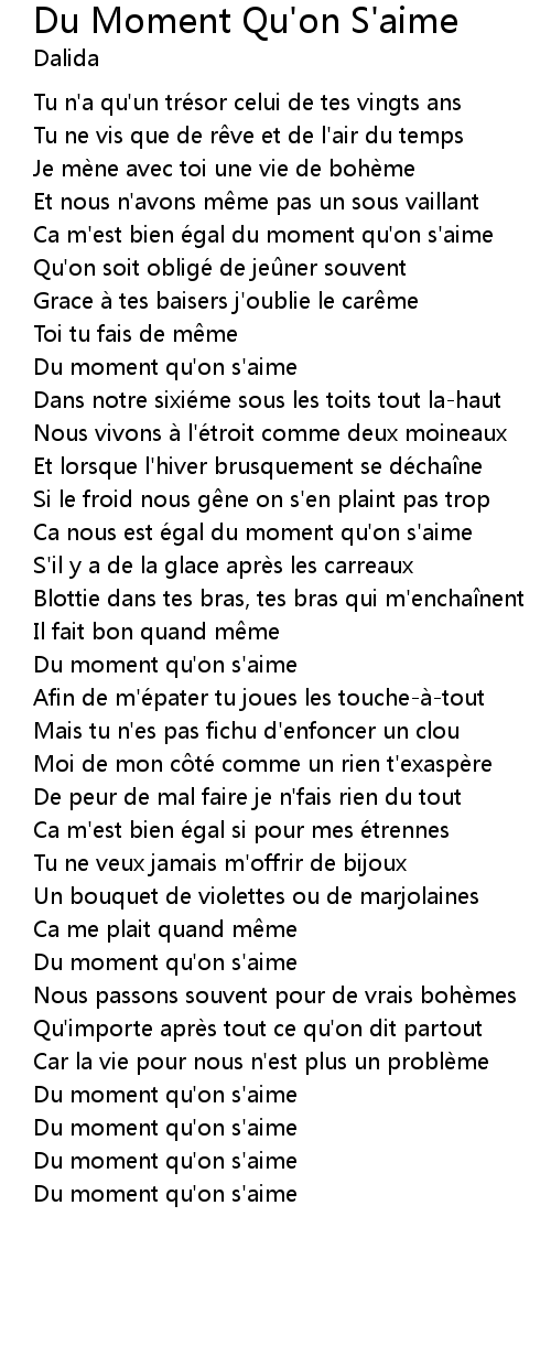 | Ca m' est bien é gal du moment qu' on s' aime | |