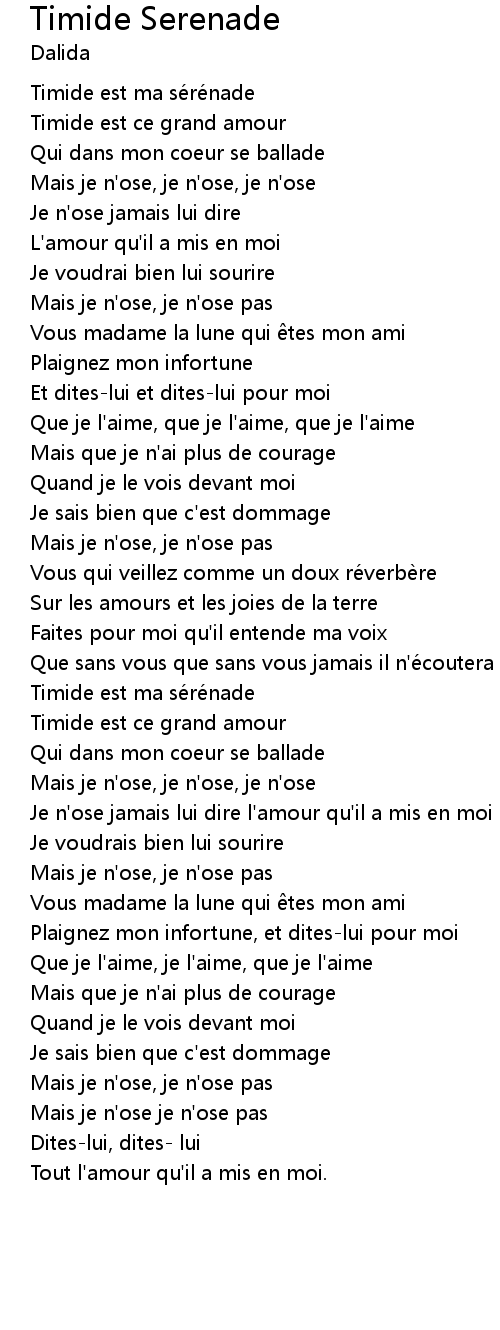 | Je n' ose jamais lui dire l' amour qu' il a mis en moi | |